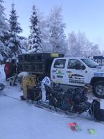 Allen Moore and his support crew prep the sleds, just prior to the beginning of the 2020 Yukon Quest. ALISTAIR GARDINER / NEWS MINER